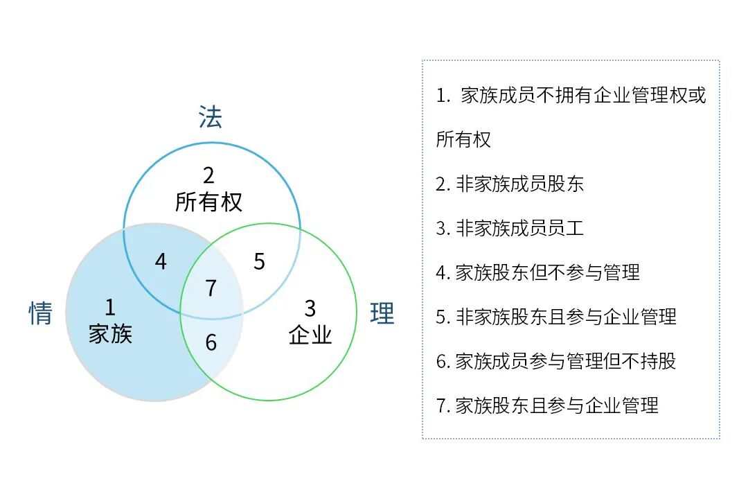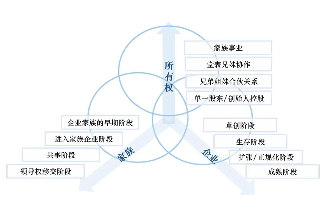 美国学者克林·E.盖尔西克(Kelin E. Gersick)曾提出的三环模型将家族企业简化为三个既独立又相互交叉的系统:家族(Family)、企业(Enterprise)和所有权(Ownership)。一般企业只有两个子系统,即