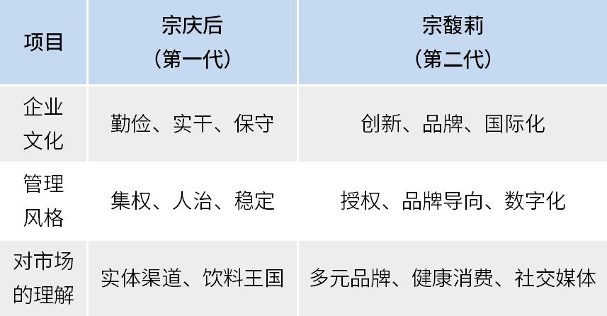 宗馥莉与父亲宗庆后代表了两代中国企业家的典型差异:
